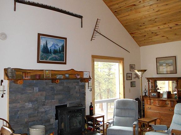 Take a breath and smell the pines while enjoying your morning coffee on the front deck. Wildlife watching is a daily pleasure with deer, squirrels, rabbits and chipmunks coming to visit. Bluebirds, hummingbirds and more than 30 species of birds glide through the meadows. Outrageous rock outcroppings invite you to explore and sit for awhile. Whether you are looking for a summer retreat or a year round home this custom designed home has everything you need. Quality construction, energy efficient design and materials, and efficient use of space, together with low maintenance exterior. Inside you'll love the beetle kill pine tongue and groove vaulted ceiling, textured wood plank laminate floor and the walk-in pantry to store essentials. On those cool evenings you'll enjoy sitting around the gas fireplace/stove with its beautiful custom dry-stack stone wall. RV parking pad with 30 amp plug and 110 amp pedestal for guests to hook up and stay awhile, Attached carport and 2 storage sheds store your toys and gear. This warm and inviting cabin in the pines beckons for you to slow down, enjoy life and take time to smell the pines, enjoy family and friends & create special memories.