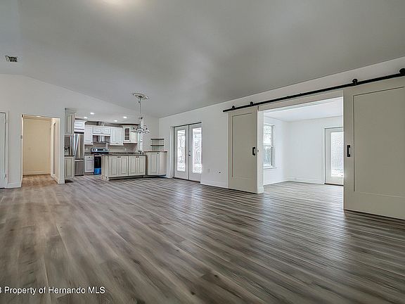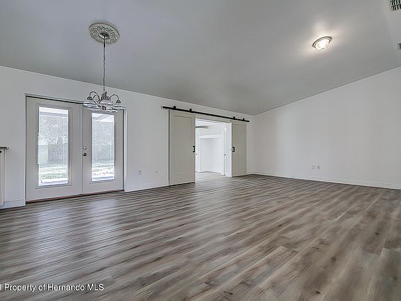 (Active under contract)... You are going to love your newly renovated home. Enter the double doors through a foyer to a great room with a beautiful chef's kitchen complete with stainless steel appliances, soft-close designer cabinetry, granite countertops, wine rack and LED lighting. The great room also offers vaulted ceilings, laminate wood flooring and French doors to a large covered porch with pavers. In the living room, you will appreciate a double barn door providing access to the third bedroom (or den) with its own separate French door entrance. The house also offers two other bedrooms including a master with a fully renovated bath and cedar walk-in closet. The other spacious guest bath was also renovated. Not only does a garage offer room for two cars but you also have use of a double carport with concrete pad where you can easily store a boat and trailer. And, in case you have other toys, an oversized lot will allow easy parking for an RV while leaving plenty of yard room to play and to install a pool. You home is located in a super convenient location with easy access to shopping, US-19 and the Suncoast Parkway for Tampa and Airport. Don't wait! Make arrangements to see this beauty today. (Remediated sinkhole with documentation.)