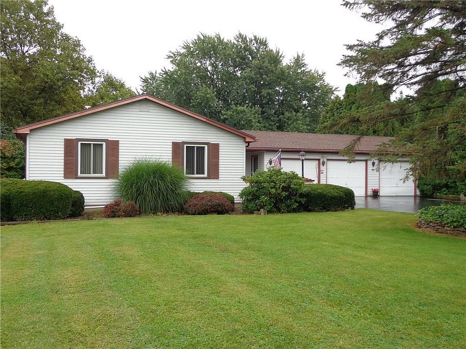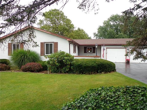 Convenience and Serenity! This low-maintenance, vinyl-sided Ranch sits on 4.6 acres with a 3 Car Garage to hold all your toys and tools, or for storage. The eat-in Kitchen has updated flooring and counter tops and features instant hot water. The spacious Living Room provides a great view of the beautiful back yard and features a wonderful fireplace for those chilly winter nights. There is also refreshing central air to keep you comfortable in the summer. Additional value is found in the Pace windows (5 years) and the second layer roof (5 years). The finished lower level could be used as a Family or Game Room and has a convenient Powder Room. This property has tremendous potential to be what you need.