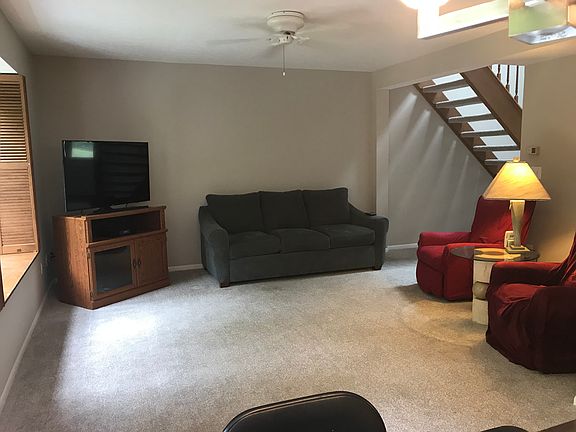 Ideal for mobility challenged with first floor bedroom, walk-in shower and laundry room no steps to entry. New carpet and paint throughout. Ceiling fans in bedrooms and living room. Electric oven, refrigerator, dishwasher, washer, dryer to stay. End unit on last street. Quiet, wooded, wildlife. Immediate occupancy
