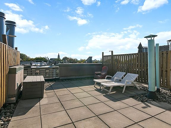 RENO 2 BR DUPLEX PENTHOUSE! PRIVATE TERRACE Where interior spaciousness & design join a huge, wrap penthouse terrace: Greet your new 2BR, 2BA Dream Home at 100 Sterling Place Condominium in the coveted North Slope! This freshly renovated, custom 1050 square-foot, duplex floor plan is melded to an oversized 400 s.f. private, tiled roof garden that makes plein air entertaining, gas-grilling, horticultural pursuits + R&R a sheer pleasure! This sprawling 2 BR boasts an inviting, open living area with southern light flowing through expansive thermal windows onto gleaming, newly laid wood floors. Wood-burning fireplace adds warmth to the living/dining "wow-factor." Well-appointed chef's kitchen just saw a designer "re-do" with sleek, blonde hardwood cabinetry; black granite countertops; hi-end hardware & fixtures; & stainless, top-notch appliances, including gas stove/cooktop, dw, micro, full-size Subzero fridge with freezer @ bottom, & Faber contempo vented range hood. This cook's delight-kit is graciously semi-open to roomy living space. This upper level accommodates the sun-filled, second bedroom w/ double-door closet; full bath with glass-door shower & Mediterranean ceramic floor tiling; entry foyer, w/ room to place welcoming table & accessories; & coat/utility closet. From here, we descend the modern, wooden staircase to a sumptuous, bright master bedroom suite. Its indulgent closet space is pure architectural genius--with multiple, smooth-slider, hardwood & glass doors enhancing an entire wall there. Luxury goes beyond the typical closet-system elements with: built-in chests of drawers; near-endless shelving; max shoe storage; sweater & shirt cubes; jewelry & accessories niches; handbag & luggage compartments; & on & on. Vanity table w/ bench seat, included! En-suite, tiled master bath boasts a Jacuzzi tub & glass shower as spa indulgences. Its positioning is open to the new, wood-floored bedroom, but this can transition back to a more traditional bath if wished. At private-roof entry landing are: "yours-alone" Maytag washer & dryer + stainless storage for your big-box shopping or home deliveries. Same bonus area could accept a computer station. Central a/c; individual heat control; security system; thermal windows & roof entry door; gated outdoor terrace w storage & privacy walls; adjoining your select cabana are two common outdoor spaces for hosting larger gatherings. Your pet will love this fantastic home: both inside & out. Move-in condition, soget set to enjoy fall foliage in splendid Park Slope & nearby hip nabes of Prospect Heights, Boerum Hill, Fort Green & Crown Heights.This established 36-unit , elevator condominium is well-managed & meticulously cared for by its super. Besides the paired common roof gardens, a planted & furnished garden is found off the 1st floor communal lounge/work facility. Bike storage available. Parking garages in the area, & you can join the wait list for garage spot rentals on-site. Express & local trains, plus restaurants, cafes, & shopping are all at your fingertips. It's a breeze away from Barclay's & the Brooklyn Museum. Prospect Park's main entrance is right here; Grand Army Plaza's Farmers Market will be a weekend must-do. Shown by appointment.