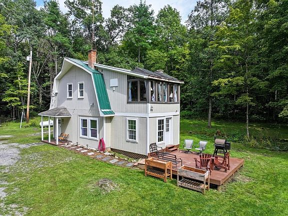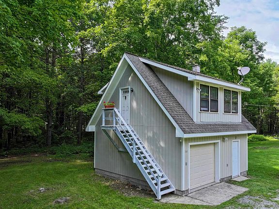 Tucked away in a private location on over 5 acres is this sweet home that has just had some updates! You walk into a mudroom entry with a bench and space to hang your coats, with new laminate flooring. Beyond that is the living room with Pergo floors that is open to the kitchen with new appliances, countertops, flooring and cabinets! An additional room on this floor makes a great office, sunroom or den. Upstairs are three bedrooms and a full bath, with a large, open living space, as well as a sunroom that makes a great office, playroom or hang out area. A back deck is where you will want to enjoy your spacious yard. Many trees have been cleared to open up this space yet keep the privacy. The two car garage has finished space above that has also recently been upgraded- perfect for an in law suite or studio space. It includes a small kitchen and bath! There is a large garden area and lots more yard space for play or pets! A couple of outbuildings could house animals, tractors or gardening tools. Affordable and ready for you to move in! Check out the virtual tour attached to the listing.
