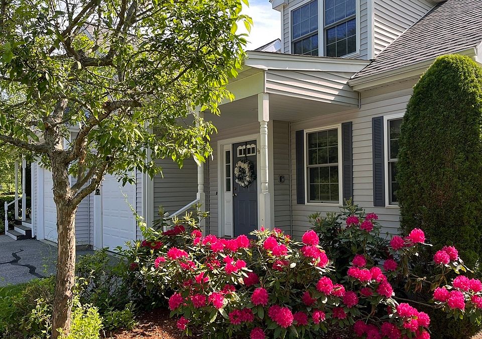 The highly desirable 55+ community "Summerfields " proudly presents this meticulous unit with hardwood floor all over. A charming farmers porch invites you into this lovely home. It opens and flows harmoniously from the formal dining room with wainscoting and crown molding to the generous sized kitchen with Corian countertops and an island for bar stools, onto a cathedral ceiling living room, and ends at the three season sun room, where one enjoys the greenery of the woods with soothing and breathtaking picturesque views esp. in the Fall. 1st floor has a bedroom, full bath and spacious walk-in closet. Hardwood stairs lead to the 2nd floor, which is covered with sparkling new hardwood floor, a cozy loft/office, and the spacious bedroom with full bath and double closets. New roof installed end of 2023. Professionally manicured landscape. Bordering with Acton, it boasts not only rural tranquility & carefree life style, but easy access to shops and eateries in West Acton Village as well.