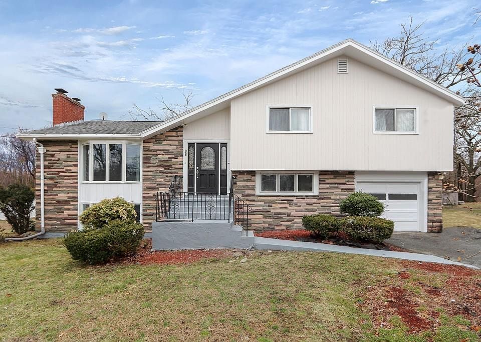 Hidden secret home; looks like split ranch, inside reveals a contemporary home with 3 floors & basement. All about the location: 10-15 min access 93 North & South, 128, 95 & 495. Walking distance to hiking/walking trails & the Blue Hills. Five minute drive to Library, Town Hall & Hospital. Cathedral ceilings & skylights throughout the house. Huge deck for entertaining & conservation land behind yard. The front door entrance to enter open area space consisting of living room with huge bay window & enclosed fireplace. Open kitchen with custom made cathedral cabinets, china & crystal racks, hidden side cabinets & enclosed spice rack. Dining room has sliding glass door concealed by levolor blinds to add an addition - a round family room with multiple windows for natural light that are also strategically placed in order to see the backyard from all sides. LRG finished basement includes a working fire place and bonus room (custom Walk-in closet)