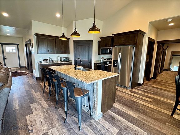 You need to look no further for your home sweet home in Dillon! Enjoy single level living in this beautiful 3 bedroom, 2 bathroom, 1688+/-sf home located in one of Dillon's newest subdivisions. Built in 2023, this house is like new in every way. Featuring an excellent open concept floor plan with spacious living room, dining area and kitchen to let you enjoy family & friends while entertaining. The kitchen is complete with a center island, single basin sink, walk-in pantry, stainless steel appliance package and granite countertops. Central air conditioning for the warm summer days and a cozy gas fireplace in the living room for the cold winter evenings. The spacious owners suite includes a walk-in closet and ensuite bathroom. You will also find two additional roomy bedrooms, full bathroom, and a laundry room/mudroom off the garage. There are plenty of large windows to let in lots of natural light and a couple of fun sliding barn doors also. The backyard features a spacious patio that is perfect for outdoor entertaining! Beautiful lawn with underground sprinklers for the children and pets. Attached 2-car garage with plenty of room for all the toys and extra parking for the boat or RV! Easy access to shopping, movies, restaurants and parks. Perfect for full-time living or a Southwest Montana get away. Don't let this one get away, call for a showing today!