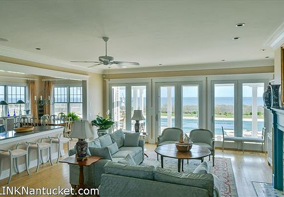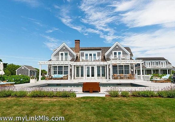 There are few homes on Nantucket Island that can include the Atlantic Ocean as a feature of the back yard. This is one of them. The home sits on a grassy parcel overlooking a south shore beach approximately 30 feet below. This is reached by a stair made of bluestone blocks set into the hillside. The house itself is grand but accessible. The main living area is backed by a wall of floor to ceiling windows and doors. These look out onto the pool and ocean beyond. There is a large fireplace with antique tile surround. Adjacent to this space, giving the feeling of an open floor plan, is the gourmet kitchen and dining area. Again, this space looks out to the ocean. All high end appliances equip this large kitchen. The counter surfaces are exceptional. Also on this level is a very large master suite with sitting area, fireplace, and en-suite bath with soaking tub and shower. This set of rooms is currently used as a family room and den, which suits it very well. On the upper level are three bedrooms, two with en-suite baths. The large room at the rear of the house serves as the master, since the bath is large and detailed. There is a sitting room with fireplace and office area. Here, there is a deck with sweeping views of the sea. The lower level of the home is a large open space for media and gaming (pool table included). There is an attached gym, bunk room, full bath, and kitchenette. The outdoor spaces include a circular drive with many parking options (including a two bay garage), large fenced lawn, and deck with many seating options surrounding a pool and spa.