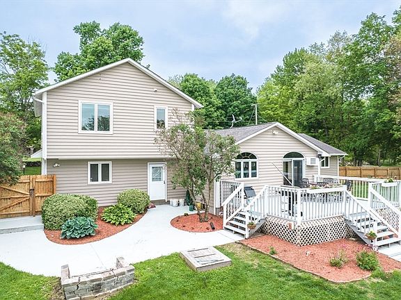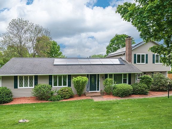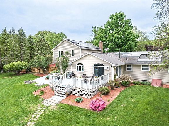 This inviting home has been well loved and now it's your opportunity to enjoy this pristine property !! Great space to entertain in open concept living room/ dining room with cozy fireplace & wood floors flows into beautifully updated kitchen with custom stone counter tops, cathedral ceiling, quality cabinetry, large dining area with FP leads to rear deck where you will enjoy watching the most fabulous sunsets !! First fl primary suite with handsome en suite bath and walk in closet, Other 2 full baths have been completely remodeled, lots of fresh paint & newer BR carpets, newer hybrid water heater, above ground (inset) heated pool w/pool house /screen porch, shed , colorful blooms and stone wall enhance the serene 1.64 acre lot, completely fenced back yard..Efficient Solar system (owned w/lifetime warranty)) transfers to new owners at no cost/ wood stove keeps everyone warm and cozy. No work to be done here so come enjoy !!