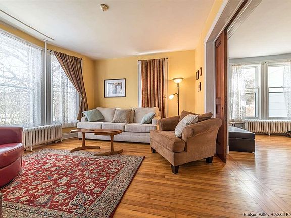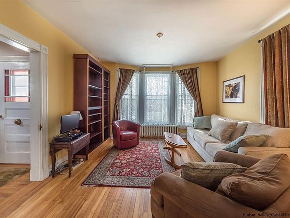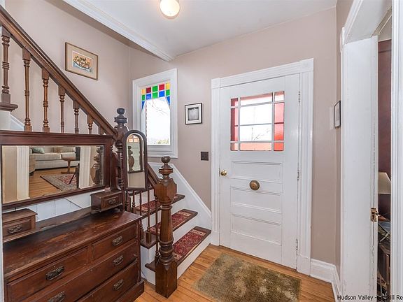 Old world charm abounds in this lovely 3 bedroom 2 bath farmhouse near the center of Union Center Road. Conveniently located close to Kingston and Poughkeepsie. Pocket doors, stained glass windows, tin ceilings, stone fireplace, and lots of windows allowing the sun to pour in. If the coziness of yesteryear is what you're searching for ...look no further. Big open rooms that are perfect for entertaining. There are several outbuildings. One that is currently used as a woodworkers shop. Some rooms inside have recently been painted and all of the mechanicals have been updated over the years. Some outside deferred maintenance still exists and owner has priced house accordingly.