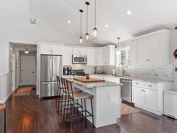 - Features: Cathedral Ceiling(s), Countertops - Stone/Granite/Solid, Deck - Exterior, Exterior Access, Recessed Lighting, Slider, Stainless Steel Appliances, Lighting - Pendant, Flooring - Engineered Hardwood