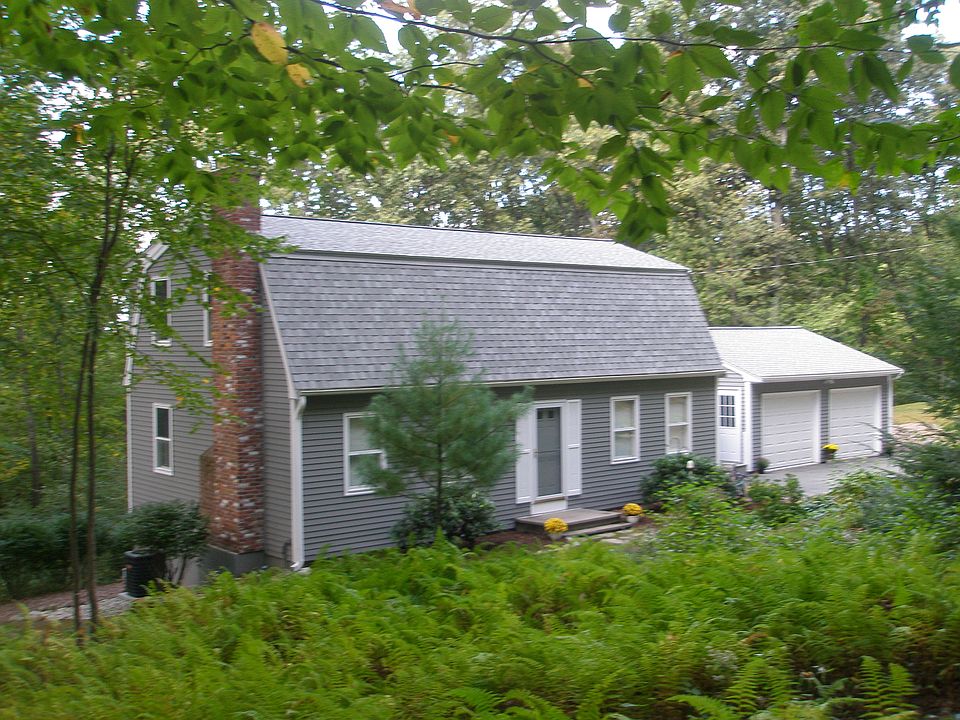 This charming New England Gambrel on an oversize lot is an affordable option in an area of fine homes. The first floor includes a spacious country kitchen with maple cabinets, formal dining room with hardwood floor, living room with natural fireplace, one bedroom and a full bath. The upper level includes a large master bedroom with attached powder room, plus two additional bedrooms and another full bath. The walk-out basement offers unlimited possibilities as additional living space, office, or workshop. The attached two-car garage has newer overhead doors with openers and lots of storage space. A new roof was installed in 2017. The 2.19-acre lot includes extensive perennial gardens, a large grassy area, and many beautiful mature trees. While quiet and secluded, this home is only 5 minutes from the 117/495 interchange, putting all of eastern Massachusetts within easy commuting range. The house is equipped with a newer high-efficiency central heat pump system that cools and heats the home in most weather. There is a gas (propane) furnace for those very cold nights, and electric baseboards in the bedrooms for adjusting the perfect temperature for everyone.