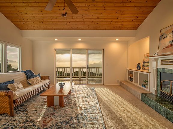 Absolutely mesmerizing bicoastal ocean views! From this premier location in the prestigious Kula Nani Estates neighborhood, there are unobstructed panoramic views of Maui’s north and south shores from almost every room! This craftsman-inspired upcountry home is perched near the top of two cleared, gently rolling acres of pristine agricultural land all usable and ready for a myriad of farm and orchard uses. Plenty of storage in the approximately 800 SF garage and ag building. With easy access from the driveway, the main floor of the home has vaulted open beam ceilings, large windows, and skylights for loads of natural light. Front and rear lanais for a seamless indoor-outdoor lifestyle. Off the country kitchen is both a large pantry and generous utility room to bring in garden bounty and farm fresh eggs from the chicken coop. The primary suite with dual walk-in closets was architecturally designed for serenity with soft lighting in the tray ceiling and a brand new spa bathroom complete with a soaking tub and bidet. Downstairs is configured as guest/extended family quarters with an additional family room, kitchenette, and private lanai access with more of those outstanding views. Central heating throughout and a wood burning fireplace enhance the cozy comforts on those cooler Kula evenings. The entire home was freshly painted inside & out, there’s a new roof and new Trex decking, new kitchen appliances, and brand new plush carpeting to deliver a full turnkey experience. Call your realtor to schedule a showing today!