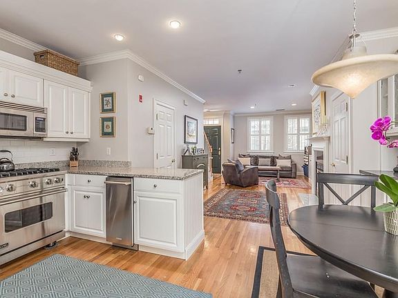 Classic brick townhome with garage parking in Charlestown's desirable Gas Light district. Walk to the best of what this area and the city has to offer. Private entrance off of charming Warren Street into an open fire-placed living space with separate dining area and powder room. Bright kitchen features Viking appliances and direct access to a private patio. Second floor includes two bedrooms and a full bathroom. Third floor boasts the master bedroom suite with vaulted ceilings, walk in closet, and master bath as well as a separate office area. Row of tandem parking spaces in garage underneath the building and crawl space in attic for additional storage.