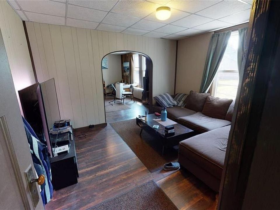 Large 2 bedroom apartment with a common room in between the bedrooms. Downstairs area is spacious and comes with a seasonal enclosed front porch and a covered back porch overlooking a large yard. Does come with a washer and dryer and off street parking! Rent is $1000.00 per month PLUS all utilities (Gas, Electric and Water) some animals will be considered. Some animals allowed, No Smoking Inside the Apartment.