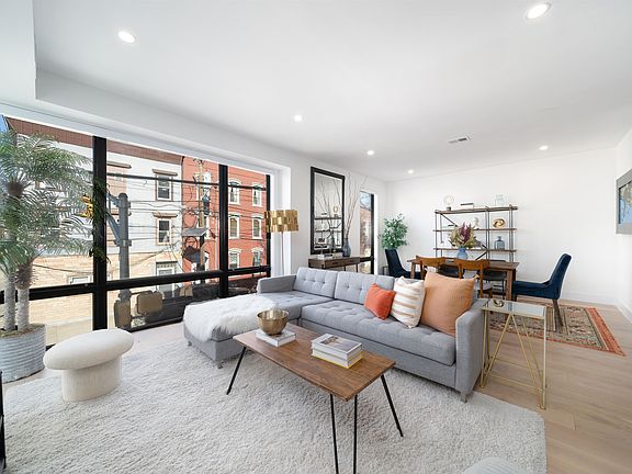 Step into elevated design and modern convenience with this newly constructed 3 bedroom, 2 bath with parking, storage and a private rooftop in the heart of Jersey City Heights. Set on a corner lot with a striking red brick exterior, this home is bathed in natural light, highlighting a spacious open-concept layout with premium flooring and high-end finishes. The oversized windows frame a beautifully designed kitchen featuring modern black and natural light oak custom cabinetry, white quartz waterfall countertops, and a matching backsplash. Premium Bertazzoni appliances bring both style and functionality, making this space perfect for cooking and entertaining. The primary ensuite bathroom is a luxurious retreat with floor-to-ceiling picket pattern tile, elegant gold accents, and a glass-enclosed shower with a multi-spray system and rain head. Additional features include ample closet space, a separate utility room with a brand-new washer and dryer, and dedicated storage for added convenience. This unit comes with a coveted parking space and access to a private rooftop, providing a perfect outdoor escape with sweeping city views. Located just one block from popular cafés and restaurants like Froth on Franklin and The Franklin, the best of The Heights is at your doorstep. The 2nd Street stairs to Hoboken provide quick access to the Light Rail, PATH, and ferry, making commuting to NYC effortless. Known for its vibrant community, excellent parks and schools, and stunning skyline views, Jersey City Heights continues to be one of the most sought-after neighborhoods in the area.