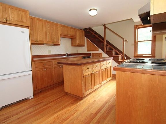There is so much to love about this home, from the stonewalls that grace its grounds to the kitchen island to gather around. A short stroll to the town library, this property has been consistently updated to create a cozy and comfortable home that will surprise you once inside. The main floor has a loft like feel, with the kitchen, dining and living room all flowing into one another. The living room opens onto the deck, and near this door there is a built-in wood rack to supply the large wood-stove that keeps this space warm and cozy when the weather turns cold. There is also a full bathroom with laundry off the living room. Upstairs you'll find a large master bedroom with walk-in closet and two more bedrooms. The upstairs bathroom was tastefully renovated and features a lovely tiled shower and radiant floor heating. The walkout basement offers good storage and would be perfect for a wood shop. With so much to offer, you'd be hard pressed to find a finer home at this price.