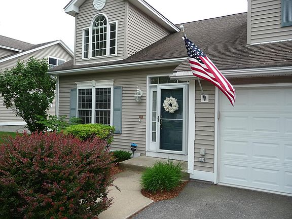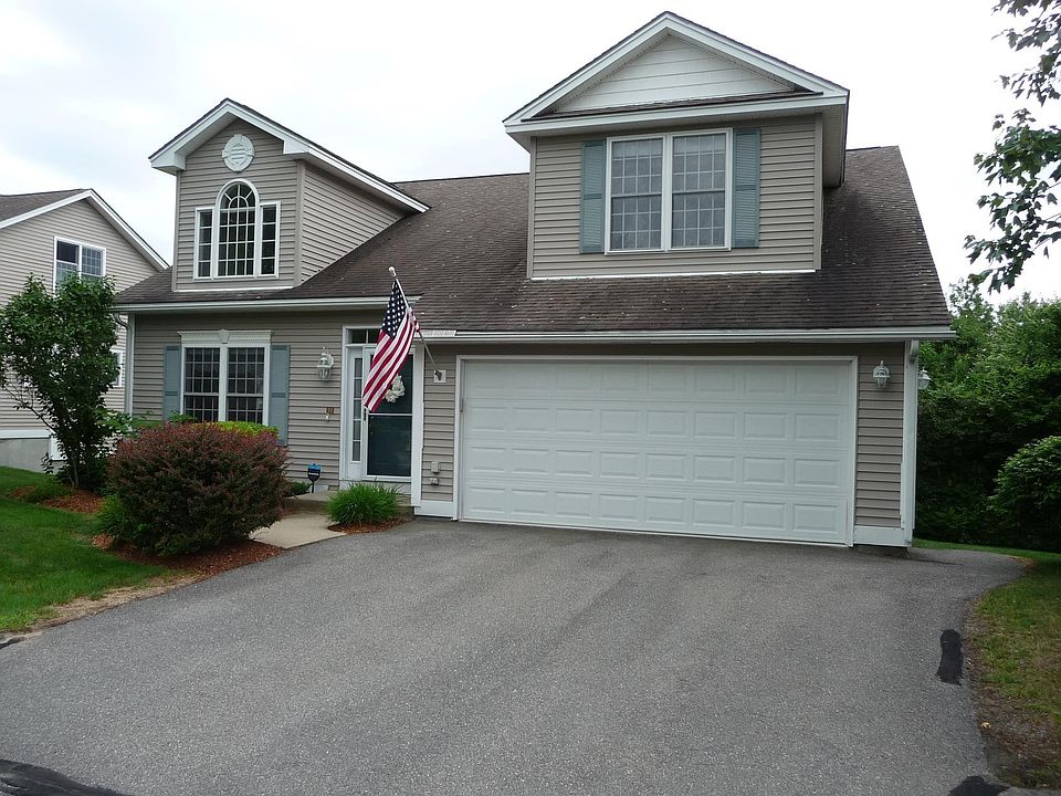 MOVE-IN ready detached condo. FIRST FLOOR primary bedroom w/private full bath. Very accessible location off 93/101; close to all shopping; medical centers;hospital. This condo feels like a private home. First floor laundry; 1/2 bath. Eat-in kitchen w/slider to rear deck overlooking wooded area; open to den w/gas fireplace. Plenty of cabinets and counter space. Living room w/vaulted ceiling offers spacious feel. Direct entry attached 2-stall garage. Second floor features full bath; 2 guests bedrooms plus loft space to use as office/library/craft room. OVER-SIZED unfinished walk-out basement offers PLENTY of storage !