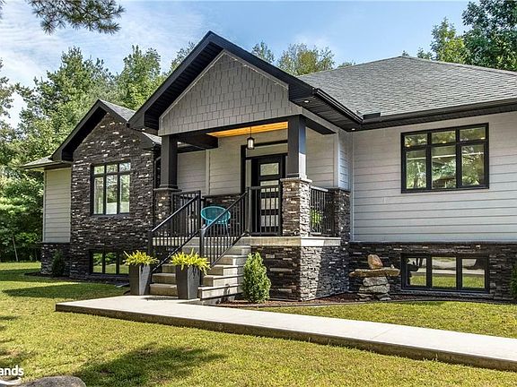 DEAL OF THE YEAR! This fabulous 5 bedroom, 3 bath home is situated on a private 1.13 acre lot in an executive neighbourhood only minutes from Midland and beautiful Georgian Bay. Top Features include *Open concept living room/kitchen with island perfect for entertaining your family and friends * Floor to ceiling windows in the living room overlooking a private back yard where you can enjoy a fine glass of wine around the fire pit *Quality construction can been seen throughout this ICF home with 9' ceiling on main floor and 8' decorative interior doors * Engineered hardwood and ceramics *Primary bedroom features an ensuite with a free standing soaker tub, glass shower and walk in closet * Fully finished basement with a large recreation room, 2 bedrooms, office and cold cellar * Have toys? the triple car garage is the perfect spot for your sleds, boat, atv or classic car. This one is a must see!