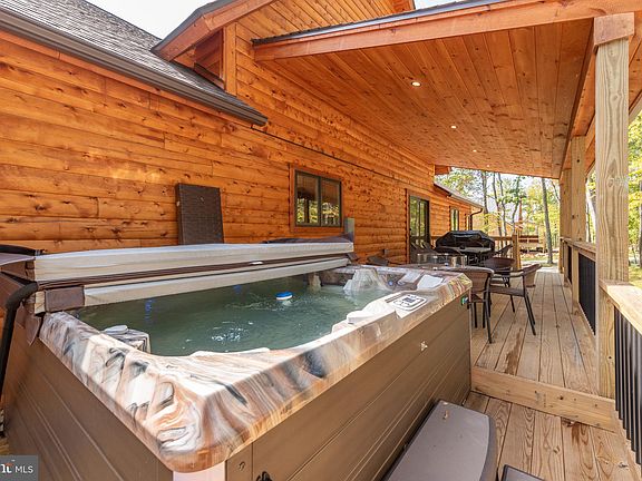 NEW CONSTRUCTION Luxury Cedar Chalet in the heart of Deep Creek Lake! Adjoining the ASCI White Water Rafting Facility, you are central located to Garrett County's world class 4 Season Recreation and minutes from local shops and restaurants. The community trail offers easy access to the slopes at WISP on one side, and 550 Acres of Fork Run's Nature Preserve on the other. The Cedar Lodge itself is a custom made log home, with two stories of open concept living. Vaulted ceilings in the main Great Room with a wall of glass on the chalet's prow, bring in all the natural light and beauty to create the perfect mountain ambiance. 2 Large Primary Suites & 4 well sized Ensuites, is perfect for hosting multiple families in comfort and style. Hardwoods and granite tops throughout with stainless appliances offering rustic charm with all the modern comforts of Home. The stacked stone fireplaces make a great center piece in both the main living room and recreation room on the lower level. Designed with rentals in mind, this home is projected to make for a phenomenal Vacation Rental. Call today for all the details!