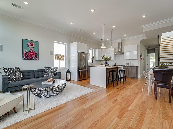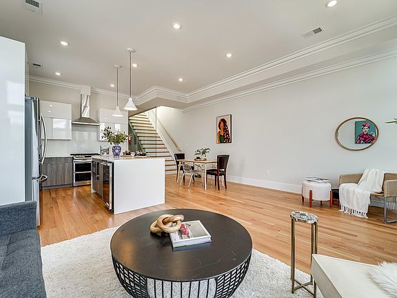 Dream a little dreamhome with this modern marvel in The Heights. Brand new construction home offers three bedrooms, loads of square footage, gorgeous private rooftop, plus garage parking for the ultimate urban appeal. To-the-ceiling Pella windows shine loads of natural light through to the open concept floorplan finished with classic design and modern upgrades like fresh oak hardwood floors, crown molding and smart home tech throughout. Upstairs glass staircase leads to full size private rooftop with excellent 360 cityscape views. Contemporary eat-in kitchens offer clean white quartz waterfall island, counters and backsplash, plus seamless custom cabinetry and stainless LG appliances including wine fridge. Primary ensuites host glass doors to private balcony plus large built-out walk-in closets. Bathrooms feature elements like double vanity, glass shower with multihead system or soaker tub for added convenience. Designated utility area features stacking Samsung washer and dryer. Shared garage parking is also available. Glass and brick modern building is one block from Leonard Gordon Park, Citi bike station, and also main thoroughfare Summit Ave. Jersey City Heights is known for its eclectic vibe, great community, excellent schools and accessibility to NYC and surrounding areas.
