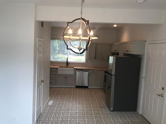 Rent free until 10/1/25. Newly remodeled 3 bed 2 bath. Energy efficient windows, Paint, flooring, appliances, farm sink, countertops, bathroom vanities/toilets,2 inch blinds, ceiling fans in living and all bedrooms. Laundry closet. Single car garage. 1 small dog addl. $50 a month. no cats. Close to schools. All utilities paid by renter.Yard maintenance is renters responsibility. 1 small dog w/ $50 addl. month. Renters ins required. Security Deposit is not applied toward rent and will be refunded on move out minus any repairs. This is a 12 month Lease