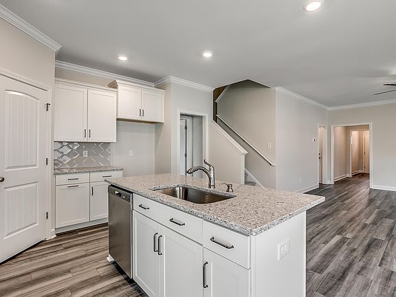 This three-bedroom, three-bathroom Hatcher floor plan is located on a lovely wooded homesite and is move-in ready. A guest bedroom is located at the front upon entry, along with a separate full bath and linen closet. Luxury vinyl plank flooring extends throughout the main living areas of the first floor. The great room is open to the kitchen and eat-in area. The kitchen features a corner pantry, upgraded white cabinets, white tile backsplash, and quartz countertops. Off the kitchen and eat-in area, you will find a large, covered porch, perfect for hosting! The primary bedroom is also on the first floor and includes a tray ceiling, ensuite bath with double vanity, quartz countertops, a five-foot tiled shower with a glass enclosure, and a large walk-in closet. Upstairs is a guest suite with a private bath. This home is complete with a laundry room at the garage entry which includes a laundry room sink. Additional options include decorative molding upon entry and upgraded appliance package in the kitchen. Gutters and full irrigation system are included! Merrill Villas is in the heart of Carolina Forest offering convenient access to amazing shops, restaurants, championship golf courses, and Myrtle Beach International Airport, and is less than five miles to the beach! Interior photos are of another home for representation only.
