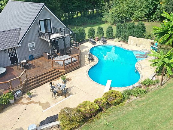 Cottage in the Country 8 ac+/-4 Bedroom 3 Bath Double Garage In Ground pool Bonus Room Over the Garage Lots of Storage Large Black top Drive Master Suite with deck and Spiral stairs down to the pool area Living area and Bedroom and bath on Lower level 2 Bedrooms, Bath, Living and Kitchen on Main Level Master Suite on top