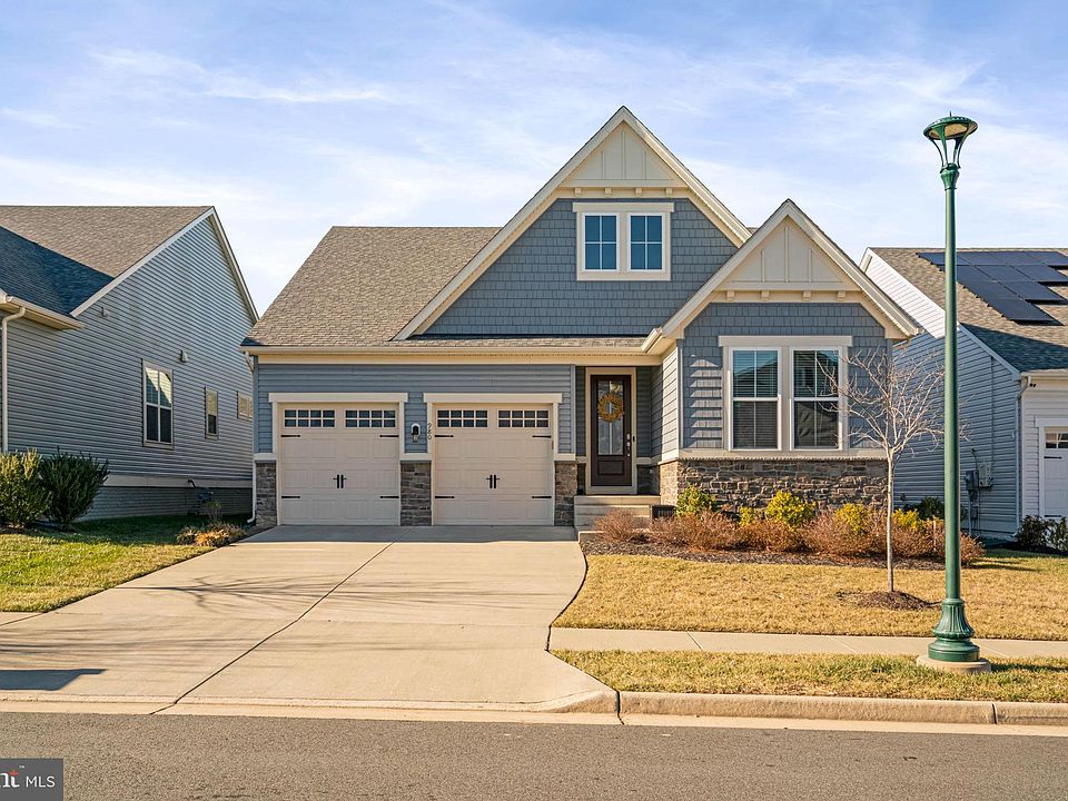 Back on Market. Beautiful 2 level Bungalow located in the highly desirable Embrey Mills community of Stafford Virginia. Located within walking distance to community parks, pools, and other amenities. Ideally located for a short commute to Marine Corps Base Quantico, I95, EZ Pass Express Lanes, and other major routes. Everything you'll ever need is close by in the Stafford Marketplace Mall which includes all major stores, groceries, and restaurants. This home is in pristine condition. Built in 2018 by Drees Homes. Open floorplan with LVP floors throughout. Main level features a luxurious kitchen with a large island and ideal for entertaining. Stainless steel appliances and quartz countertops and subway tile backsplash. Large open floorplan, living room with built in gas fireplace and shelving, walk out to covered deck from dining room area, exterior stairs lead to spacious fenced in backyard. 3 spacious bedrooms located on main level. Hallway full bathroom with tub shower. Primary bedroom features a carpeted floors, large walk-in closet, luxurious bathroom with double sink vanity, private latrine, and a standing shower. Basement is fully open featuring a full bathroom, legal basement bedroom, walk up stairs to back yard, two large unfinished storage rooms. The unfinished space can be finished for additional living space and added value. Spacious two car garage with floors that have been recent epoxied and sealed. Electric car charging port installed. Tesla charging device does not convey. All appliances convey. Backyard pergola conveys. Previous contract feel through due to financing.