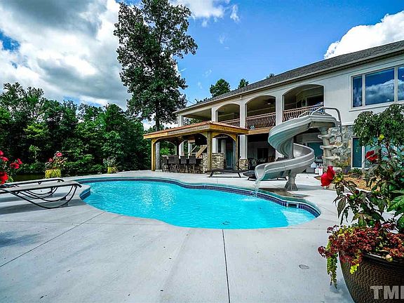 Private executive house on its own peninsula at Hyco Lake. Home has open floorplan with high ceilings. Heated in ground pool with water slide. Enjoy relaxing on the large covered porch and patio area. Entertain many with the outdoor walk up covered bar. Whole house audio, inside and out! Custom features throughout luxurious master bath with large walk in shower. Updated kitchen. Easy walk to the boat dock with a bonus room on it! Totally renovated in 2016.