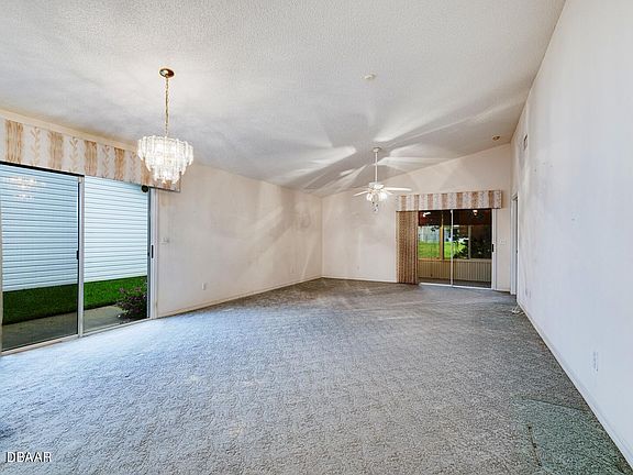 Awesome opportunity to be the new owner of this custom built original owner home. You will enjoy this 2/2 well maintained home with vaulted ceilings and open floor plan. Tiled kitchen w/breakfast bar, lots of cabinets, counter space and updated appliances. Open great gathering room with sliders to the outdoor patio w/ wrap around sidewalk to the backyard. Another set of sliders off the great room leads out to the all season room with views of the private backyard & pond. Both bedrooms have their own en suites with one has tile throughout for the ease of use and the bath is equipped with a roll in shower. 2 Car garage has sliding screen panels, sink and pull down attic stairs. Centrally located in Port Orange convenient to everything. House is wired for generator.
