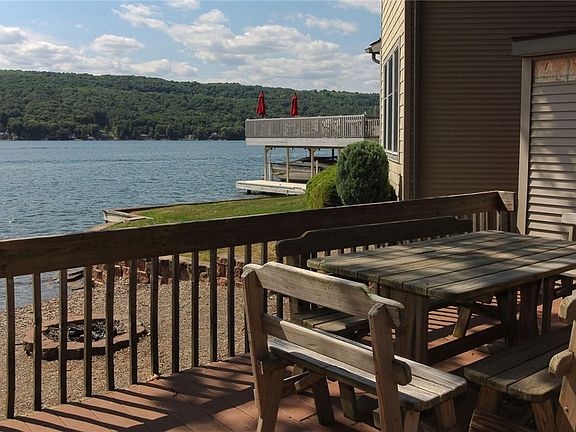 This spacious 2 story year round colonial with 5 bedrooms 3.5 baths is just waiting for you to start your life on the lake. There's a beautiful yard for outdoor activities. Across the street leads you to a nice pebble beach with 20' of gradual entrance into Keuka Lake with a new permanent dock, private sitting deck and firepit to enjoy lakefront living. Large dining and kitchen area with new stainless appliances. A livingroom equipped with a gas fireplace, to enjoy on those cooler mornings and evenings. Large windows allow for excellent views of the water front. This property has been a successful vacation rental with verifiable income history. Move into that lake living lifestyle one can only experience in the Finger Lakes!