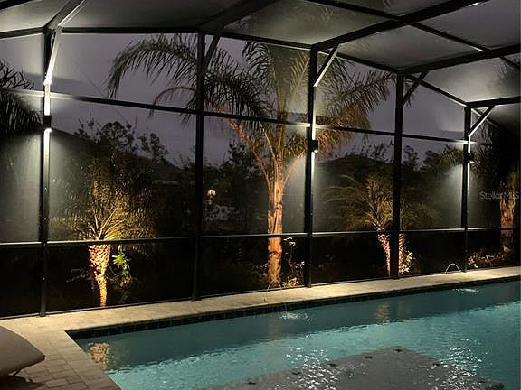Welcome to your dream home! This newer three bedroom 2 bath POOL HOME fully fenced in plus OFFICE and BONUS room is meticulously maintained house offers the epitome of luxury living with a host of premium features with over $250K in upgrades. Step into a paradise of relaxation with a screen-enclosed paver patio, enclosed saltwater pool with sun deck and LED lights, creating the perfect oasis in your own backyard. The backyard has mature landscaping and many fruit trees to include avocado, peach and mango. The roof with architectural shingles and new gutters and gutter screens were installed in 2021. The irrigation system has 7 zones to cover entire yard and the exterior home has color changing ambience lighting all around. The home is also equipped with an hook up for a generator and upgraded solar screens for all windows thorughout. The interior boasts upscale upgrades, including beautiful tile flooring and a gourmet kitchen with granite countertops and stainless steel appliances. The 3 bedrooms plus a den/office provide ample space for your family's needs. Some of the extra upgrades the interior of the home features is the garage converted to a bonus movie room with newer minisplit A/C, glow in the dark epoxy flooring, movie projector and screen, added insulation in garage and attic, , newer 80 gallon hybrid RHEEM water heater and a whole house Capacitor to reduce energy costs and a water purification system. Situated in a prime location close to shopping and with easy access to I4, this home seamlessly blends luxury and practicality for the perfect Florida lifestyle. Don't miss the opportunity to make this your forever home!