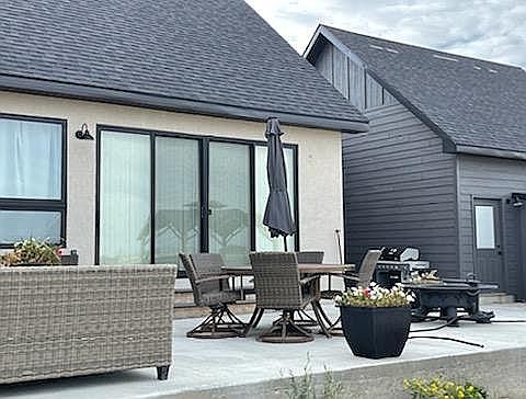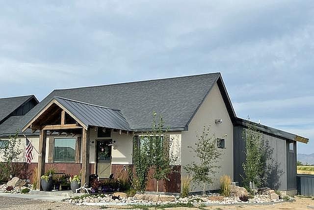 This 32.5± deeded acre property is home to native grasses and a beautiful view of the Laramie range. There are approximately five acres unfenced around the house with the remaining 27 acres fenced. The residence was built in 2019 and is a three-bedroom, three-bathroom, ranch-style home with 3,138 sq. ft of total living space and an attached two-car garage. The main floor consists of a kitchen, living room, dining area, finished laundry room, full bathroom, office, and master bedroom and bathroom. The basement includes a family room, two bedrooms and one bathroom. This rustic farmhouse-style home features cathedral ceilings with exposed beams, beautiful chandeliers, engineered hardwood floors, a rock fireplace, and large windows that allow for plenty of natural light. The kitchen has tall white cabinets, a large farmhouse sink, and trendy coffee bar. The countertops are leather finished granite. The backyard features a gazebo and large concrete patio that can be accessed from the dining room or master bedroom. The exterior of the home is stucco accented with Corten steel. The front of the home is landscaped with large river rock, tall grasses and Aspen trees. This property is located 11 miles southwest of Wheatland, Wyoming.