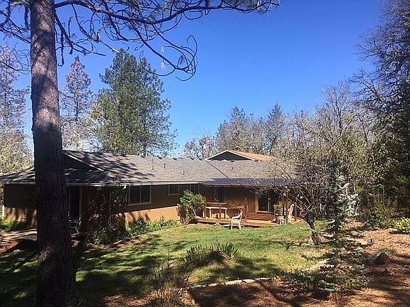 3BD/3BA 1-story on 5-acre moderately wooded property, backing to BLM. **NEW ROOF 2018** Newer double-pane vinyl windows & sliding doors, heat pump, +pellet stove on backup generator. Circular driveway with gated entry. **30 x 40 SHOP** for business or hobby. Cross-fenced pasture w/creek (seasonal) and 20 x 27 metal shed/barn. **BACK-UP GENERATOR** in 2-car attached garage keeps you comfortable when needed. **NEW APPLIANCES 2020** Kitchen features wood cabinets & Corian counter-tops with bar, new sink/faucet/appliances. Hardwood flooring & ceramic tile throughout. Split floor-plan provides privacy for the expansive master bedroom with walk-in closet, sliding glass door to deck & hot-tub. En-suite master bath with double sinks, recessed LED lighting, and large walk-in shower. 2nd bedroom features bath with deep soaking tub/shower & sliding glass door to a private deck. 30 x 40 stick-built Shop has roll-up bay doors, 100 amp service (wired 110/220), water stubbed-in, PLUS 3 finished/insulated office/hobby rooms. Private RV parking with power & water. Newer exterior paint, gutters, septic tank & leech lines. Plentiful well water supplies home, pasture, and gardens. Beautiful grassy yard with fire-pit & dog fencing in addition to boundary fencing on three property lines; rear of property is open to BLM. Bonus garden storage shed and covered carport/storage.