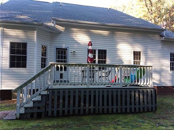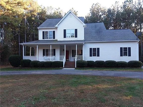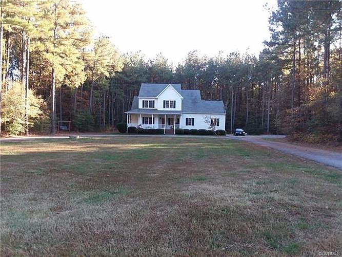 Enjoy your space. Five plus acres in a very open floor plan on first level with great room, dining, kitchen with Corian counter tops, breakfast nook, master bedroom, office study, and large laundry room off the kitchen area. 9 foot ceilings and open balcony overlooking first floor. Wrap around front porch has room for rocking chairs to rock and smell the country fresh air and spring summer rain showers. Upstairs has another large bedroom and 2 additional bedrooms. Also a large rec room and full bath. Equipped with propane powered whole house generator to insure power during any outages. Also has a rear deck and fenced in area for pets. 2 car finished garage and circular asphalt driveway. Close to Richard Bland College, Fort Lee, I-95 and 85, shopping. Nothing to do but move-in. Seller furnishes a one year home warranty.