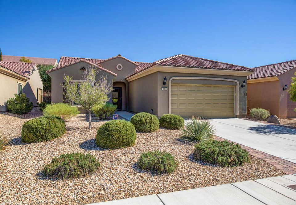 SIDS PAID IN FULL ($6,437)!! This gorgeous home features 2 bedrooms + den, 2 baths, open kitchen/great room and has been rarely used since originally purchasing as brand new. This is the original owner. Experience resort-style living at Sun City Mesquite! Indoor and outdoor pools, spas, fitness facility, billiards, golf course, 18 hole putting course, tennis, pickleball, bocce and much more! There are no homes in front of this home and it has an unobstructed view of Flat Top Mesa for viewing those gorgeous Mesquite sunsets! This home has upgraded granite kitchen countertops, upgraded cabinets, and 18" floor tile in living areas. Owner installed upgrades include professional landscaping front and back, and extended rear patio with paver stones, also paver stones along the driveway and front walk-way, pre-wire for surround sound in great room, extra electrical outlets in garage, special wiring for a future swimming pool or hot tub. A MUST SEE!!