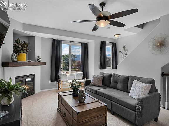 MUST SEE spacious, 3 bed, 2 bath, open-concept home with central air, attached garage and abundant natural light! Home is located West of 1-25, among single-family homes, with great mountain views from 3 south facing windows. You'll love the large kitchen with all stainless steel appliances, plenty of solid-wood cabinets, plenty of counter space and a double-oven. Full-sized stackable washer/dryer just off the kitchen which allows room for storage and includes a shelf. All appliances are included! The dining area is open to the living room, which enjoys a gas fireplace with a wood mantel. The half bath is conveniently located on the main level. New water proof plank flooring in the entry, kitchen and both bathrooms. Upstairs, you'll find 2 large bedrooms, both with vaulted ceiling and ceiling fans! The primary bedroom includes double, full-sized closets and private entrance to the full bath. The full bath has a high ceiling and large window allowing additional natural light to flow upstairs. The second bedroom has a must see mountain view! The 3rd bedroom is unconventionally located off the garage. This home looks like a townhome but is legally considered a condo. The fenced backyard is larger than most condo/townhomes complexes outdoor spaces! Great location with multiple parks and bike baths close to home and unmatched privacy to other condo/townhome complexes! Enjoys easy access to I-25, Downtown Colo. Springs, Garden of the Gods and short drive to Highway 24. Fast move-in available!