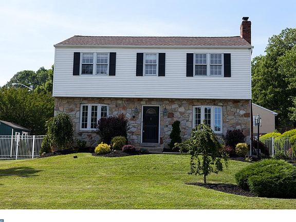 Welcome to this amazing house in a private setting in an isolated corner of Springfield Township. This wonderful home on a quarter acre corner lot will be your year round oasis with everything you need to move in and relax.This house is perfectly situated on a professionally landscaped corner lot with a private, fenced in back yard and parking for three cars. After marveling at the beautiful front yard you enter into a bright living room with hardwood floors and lots of natural light from a large front window. Next is the formal dining room also with hardwood floors and chair railings as well as crown moldings. Look out the double windows to the in ground pool in the back yard. The modern kitchen is a cook's dream with granite counter tops, under counter lighting, a large island for additional cabinets and counter space, a built in Refrigerator, dishwasher and trash compactor. Also on the first floor is a cozy family room with a gas fireplace. Upstairs are the four bedrooms including the master with extraordinary crown moldings and a master bathroom with ceramic tile floors and walls from floor to ceiling. The hall bathroom has two sinks for added convenience. This bathroom is also finished with ceramic tile floors and walls. There is a walk up attic accessible from one of the bedrooms. The living space continues into the finished basement which continues the entertaining theme of this house. There are two finished rooms in this lower level for plenty of room for the guests. One room contains the wet bar as well as the mini kitchen with an under counter refrigerator, ice maker and additional granite counter space. There is a half bath on this lower level also. Back up to the main level, through glass sliders off of the kitchen is the 'Oh my goodness' backyard. Enjoy all summer long on the patio with an awning covering and never leave your beautifully landscaped yard with a heated in ground pool. Who needs the shore or the community swimming pool? Come see this remarkable home in a remarkable setting and move in to enjoy this summer at your private country club retreat!