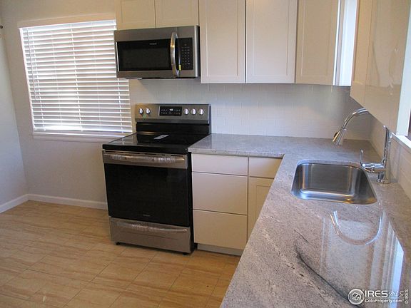 Contemporary, gorgeous remodeled home! New kitchen: white Shaker cabinets, slab granite counter, stainless steel appliances including stove/oven, micro and dishwasher. Painted inside and out with light and dark shades of grey. New bathroom incorporates 3 different tile types in tub surround, new fixtures and classic floor tile. Freshly refinished hardwood floors in rich, Walnut stain. Huge over-sized garage for backyard or professional mechanics. 3 off- street parking spaces. Fitzsimons area.