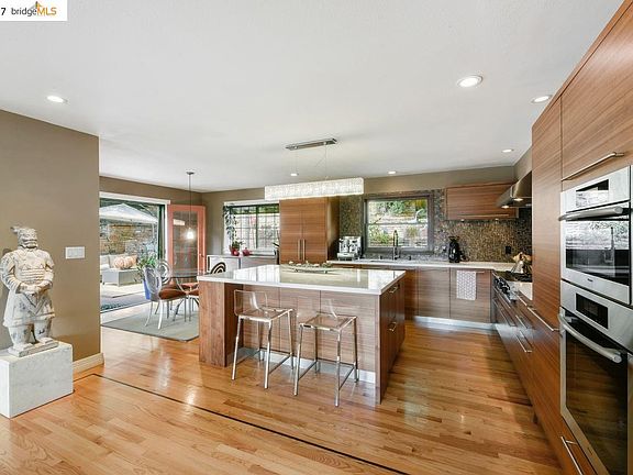 Elegant, serene home offers a vibrant, open plan which is anchored by the chic showcase kitchen. Top-of-the-line appliances are crowned by a brilliant Swarovski crystal chandelier. Entertain or relax in the adjacent family room, formal dining and living rooms. Seamless flow to a charming outdoor oasis. Upper level boasts a luxurious master retreat with a spa-like bathroom. Popular Montclair location, walk-able to the Village - Peet's, shops, restaurants, Sunday farmers market.