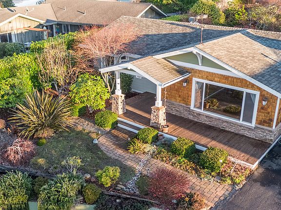 Telegraph Hill home w/beautiful Bay Views. This well maintained property includes a Redwood front deck, covered back patio, fenced yard & lovely gardens w/water feature, fruit trees & full landscaping. Interior includes maple hardwood or bamboo flooring, open living area, skylight tubes, new quartz kitchen counters, custom window treatments, oversized laundry room w/bathroom. Passthrough garage. 12x12 finished bonus room in back yard.