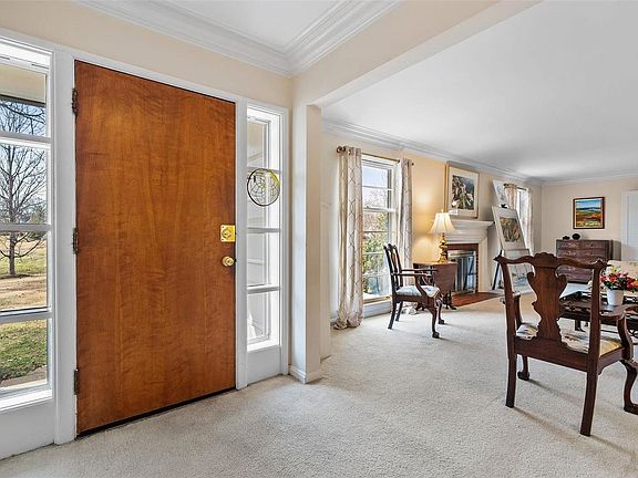 Beautiful 4 bed, 3.5 bath white-painted brick ranch with adaptable floor plan to suit your needs. You will love the airy, light-filled spaces the minute you step inside the entry and into the living room with floor to ceiling windows flanking the fireplace that's open to the dining area. The family room, with two walls of windows, has a fireplace, side door to the driveway, and access to the 2-car, rear entry garage. The kitchen, with granite tops and s/s appliances, has a pretty circle bay window creating a darling breakfast nook. The primary suite has a private door leading to the deck, vaulted ceiling, walk-in closet, and full bath with jetted tub and zero entry shower. It is currently being used as a studio. The 2nd bedroom, with Murphy bed, has a slider to the deck and access to the Jack & Jill bath shared with the primary bedroom. Another en-suite bedroom and 1/2 bath complete the main level. Mostly finished LL has 4th en-suite bedroom, rec space, laundry, and plenty of storage.
