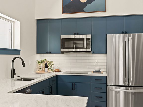 Smart designLofted queen bedroomEnergy-efficient induction cooktopFull-size refrigeratorKitchen features quartz countertopsPrivate lighted entrance