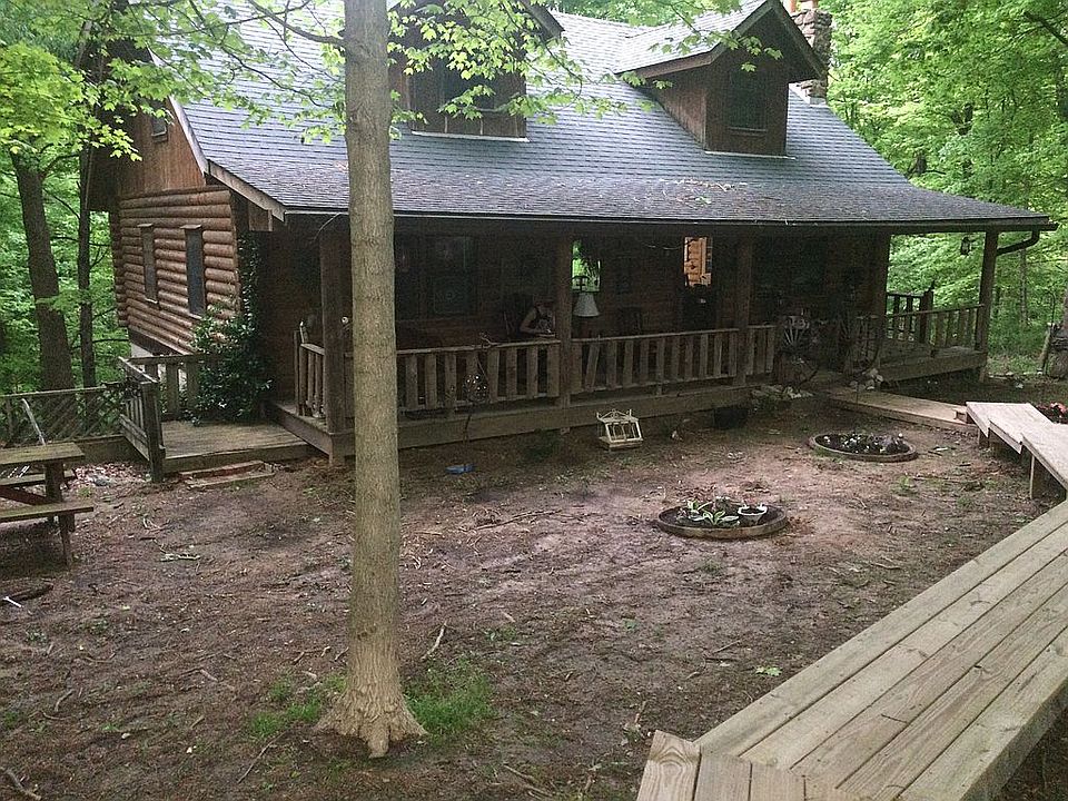 RARE FIND: Horse/Nature/Hunter Lover Paradise. Just under 10 acres surrounded by another 35 acres of woods and trails located less than 15 miles from downtown Louisville! 18'x 24' wood carport and 34'x50' wood frame Amish built horse barn with (2) 12'x50' lean-tos, 4 stalls, tack room and loft surrounded by 4-board black fence, small pond, woods and pasture land. Comfortable lodge style home features exposed wood-beam ceilings, stone fireplace, 12'x17' covered porch off dining area, 8'x40' covered front porch, family room up overlooks great room, master bedroom with 2 walk-in closets and more. Custom wood cabinets, stainless steel appliances and granite counter tops in kitchen. Partially finished basement with 4th bedroom/walk-in closet or game room. Basement plumbed for 3rd bath. Property includes 15' roadway easement that transverses property for access to neighbors property. All square footage are estimates. ***Willing to work with buyers agent*******