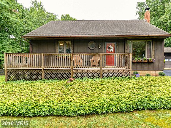 Charming 4 bedroom, 3 full bath, Cape Cod on .583, private, wooded acres. Updated kitchen and baths. First floor master bedroom with master bath. Large walk in closet in the master bed room includes a washer and dryer. Another set in basement. Detached 2 car garage. Enjoy views of the back yard from the 13 X 11 sunroom. Wood stove in basement. 3 sheds. Beautifully landscaped. No HOA.