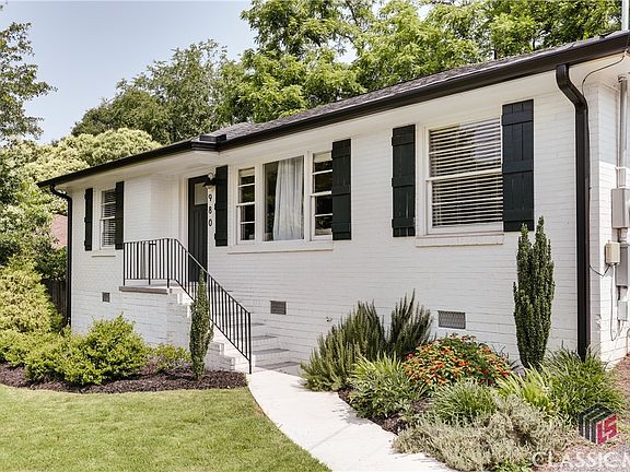 1960s brick ranches are always a solid bet, but this one ups the ante: The white painted exterior with dark trim and tasteful landscaping are eye-catching, and the attached carport provides covered parking. Inside, gorgeous hardwood floors run throughout the home and natural light flows in from the huge windows. The renovated kitchen features quartz countertops, subway tile, brass hardware and a gas range. The dining and living rooms are open to the kitchen and make entertaining a breeze. A convenient laundry closet is tucked next to the kitchen as well. Three bedrooms and two full baths are located down the hall, including a primary suite. Both baths feature tile floors and shower surrounds with modern cottage styling. Outside, the backyard is private and ready for morning coffee or evenings with friends and family. The backyard is almost fully fenced and can easily accommodate any furry friends. Plus, the renovations on this home go beyond just aesthetics: the architectural shingle roof is 3 years old, the HVAC is 4 years old, there is newer plumbing and electric throughout and there is an active termite bond.
