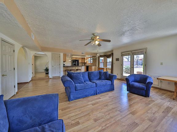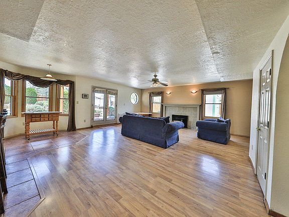 Welcome home! Move in and enjoy this gorgeous home. The upgrades are plentiful and include new carpet, new wood grain tile floors, custom cabinets in kitchen, granite tile counter tops, black appliances, updated master bedroom showcases two closets,fireplace and balcony overlooking the backyard, master bathroom is generously appointed with glass block and double sinks. Windows are newer, patio features beautiful mountain views, plumbing has been upgraded (no poly pipes), pellet stove downstairs, wet bar, 3 car garage with work bench, backyard access, large storage shed, dog run, colored concrete and safety fence around pool. Your house will be filled with family and friends!
