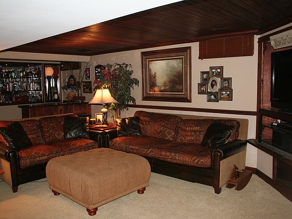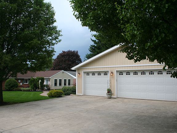 Very large ranch in exceptional condition. Four or 5 bedroom home, fully finished basement with new full bath. Exceptional 3 car garage, epoxy floor, built in air compressor lines for easy hook up, stainless steel work area, internet and tv hook up! Fun. Very large family room with wood stove (new chimney flu) and custom drapes stay. Large sun room looks out on beautiful landscaping and patio. This is a large corner lot, terrific landscaping and very clean. Newer roof, new chimney flu, ducts cleaned and sanitized when furnace replaced in 2004. Too many upgrades to mention.
