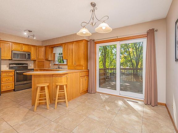 Wonderful opportunity for you to own this great 4 Bedroom Home on a corner lot nestled on the edge of town. Home has a fenced Backyard with mature trees and lighted fire-pit area. Main living area has beautiful wood laminate flooring. Kitchen features stainless steel GE appliances, hickory cabinetry & tile floor that continues into Dining Room with patio door to generous Deck. Upper level includes 2 Bedrooms & a Full Bath with in-floor heat & jetted tub. Lower-level Family/Amusement Room has East-facing windows for great natural light. Lower level also incudes 2 more Bedrooms, ¾ Bathroom with additional storage closet & Laundry Room area with GE appliances. 3-car Garage is insulated & has a workbench corner for working on projects. Short distance to the community pool, Prairie Park with playground & Peterson Park. Easy access to Hwy 12.