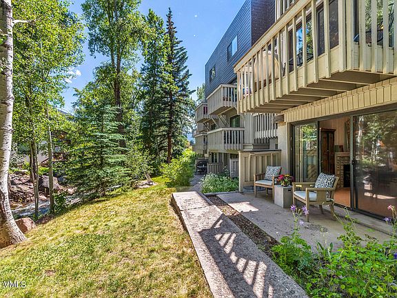 Welcome to this creekside living in Vail with this charming non-deed restricted one-bedroom condo! Brooktree is conveniently located on the free Town of Vail bus route, eliminating the need to fight the parking structure on a powder day and offering an extremely valuable feature to the investor-owner looking to enjoy or rent the property. You can even easily walk to Lionshead and the village over the pedestrian bridge in the area. This great ground-floor end unit feels more like a townhome than a condo and is ideal for dog lovers. Enter through your own private entrance between two buildings, and the abundant natural light and sounds of running water in the creek will instantly change your state of mind for the better. Sliding glass doors lead to the walk-out patio perched on the banks of the picturesque Sandstone Creek, and the towering aspens above provide the perfect amount of shade and a light breeze while their small leaves filter sunlight through. Inside you'll find a completely open concept and spacious living area featuring a gas fireplace, plenty of seating, and a dining area for four. The kitchen features an open layout to the living room, and there is a spacious bedroom with great natural light. The bathroom has a jetted tub perfect for a warm soak after a long day on the slopes. This 1-bedroom is a gem with a rare creekside setting that is on the bus route and is not deed restricted. Don't miss this opportunity! The exterior improvements from the special assessment have been completed and the seller will pay the final payments at closing.