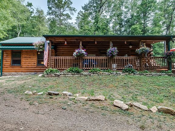 Experience the peacefully easy feeling you will get while sitting on your front porch at this custom built 2 bedroom and 2 bathroom log cabin nestled privately inside 11.5 unrestricted acres. This cabin features one level living with beautiful wood interior throughout. Enjoy strolling through the woods down the path near the stream to your open pasture. The large open side deck is waiting for you to entertain or unwind in the hot tub. Enjoy roasting those marsh mellows on your fire pit deck. Your oasis awaits you!